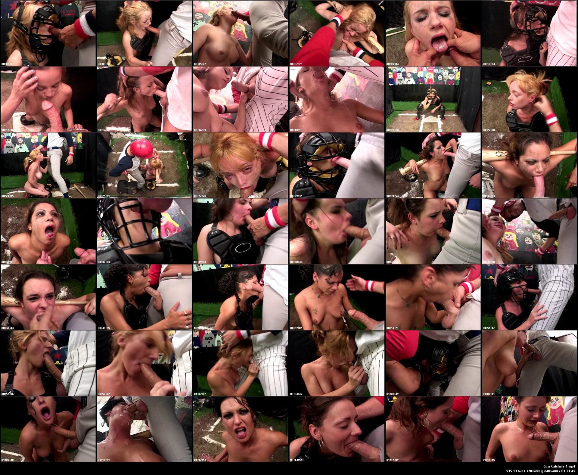 The hitter makes Frankie LaRue dust off the plate then he slides his cock between the slots on her catchers mask and into her waiting mouth. She sucks his meat back like an all star, dropping to her knees and grabbing his thighs so she can really push herself down on it. She impales her throat on his thick prick causing her self to gage and slobber all over him. Her eyes start to water and she nearly pukes but she is so turned on she can't stop. When unleashes a fastball full of jizz down her throat she swallows it all like a champ and asks for more.