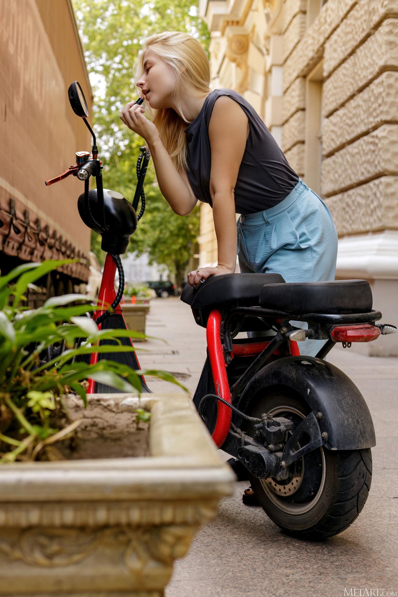 Meeting you on the city street, stunning blonde Bianca Bell will charm you with her flirtatious smile as she leads you back to her apartment. In the bedroom, the mood grows more intimate as she lounges on the bed in a sequined bikini that accentuates her voluptuous figure. When she’s naked, her beautiful big breasts bouncing free and her gorgeous blue eyes sparkling seductively, the effect is overwhelming.