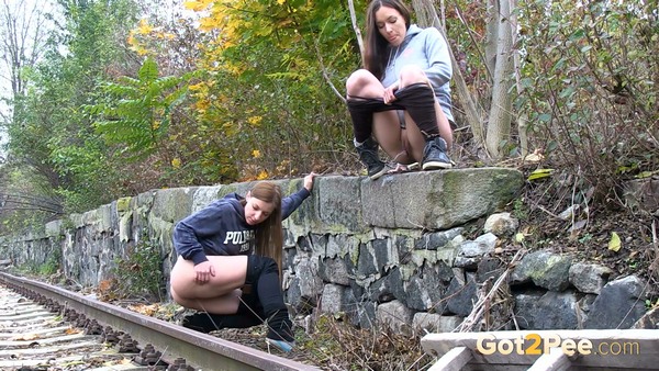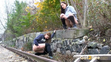 She pees near the train line (1080p)